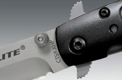 Фиксация клинка в разложением (рабочем) положении обеспечивается с помощью замка из рессорной стали. По результатам тестов, проведенных в компании, замок выдерживает нагрузку в 130 фунтов или практически 59 кг.