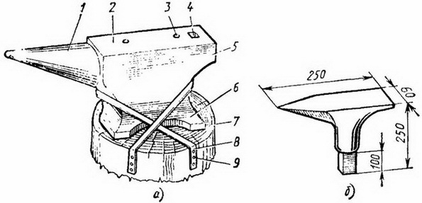 Наковальня (рис. 3.1) представляет собой массивную металлическую опору, на которой куют заготовки.