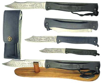 Зачастую национальная принадлежность определяется не только происхождением ножа, но и регионом, в котором его собирались продавать. Нож дук-дук (douk-douk) был создан Гастоном Конье в 1923 году и предназначался для продажи во французских колониях в Юго-Восточной Азии. Выбирая название для ножа Гастон Конье воспользовался словарем «Ларусс», где и нашел это загадочное слово. В книге « Карманные ножи» Доминик Паскаль ссылается на имя меланезийского бога — Дук-Дук. По другой версии, наименование Дук— дук относится к тайному союзу народов Меланезии, связанному с их анимистическими верованиями. Слово «дука» означает дух умершего. Раз в год в течение месяца члены союза устраивают церемонию, появляясь в деревнях в страшных нарядах и масках. Непосвященные должны верить, что это не люди, а духи умерших и выплачивать духам дань.