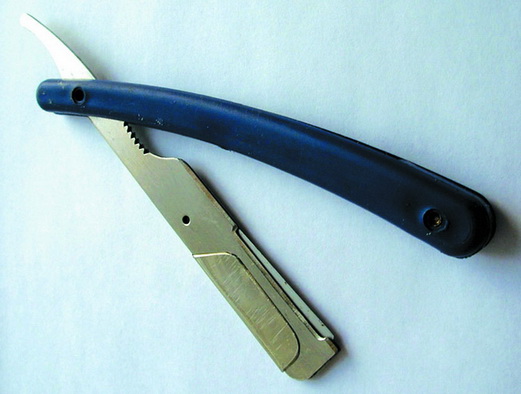 Однозаковная бритва, произведенная в конце XIX века британской фирмой George Wostenholm & Sons в оригинальной коробке. На черен нанесен фирменный логотип I-XL: сокращение популярного в XIX веке девиза «I excel in everything I do» — «Я великолепен во всем...»