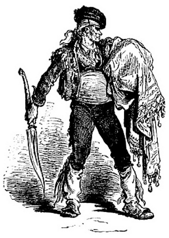 Одним из наиболее колоритных и известных видов холодного оружия является классическая испанская наваха. Наиболее простые разновидности этого складного ножа имели изогнутую рукоять из цельного куска рога, листовидный клинок длиной с ладонь и шириной в два — три пальца. Клинок однолезвийный, реже встречается частичная заточка обуха. Обоюдоострые навахи имеют прямую рукоять, в которой клинок скрывался почти целиком. Отличительной чертой навах является мощная наружная пружина, напоминающая конструкцией коромысло, закрепленное посредине осью на рукояти, один конец которого упирается в рукоять, а другой специальным отверстием фиксирует клинок в открытом положении за выступ на пятке. Иногда пружина имеет сложную конструкцию, состоящую из нескольких сегментов, что практически обеспечивает складному ножу надежность нескладного. Считается, что хорошей навахой можно пробить насквозь две медные монеты, положенные на брусок из твердой древесины: прочный фиксатор не дает клинку сложиться, а великолепное качество стали, сохраняет острие в целостности и сохранности. Носился такой нож заткнутым за пояс. Он был всегда под рукой. Что представляет собой наваха можно увидеть на рисунке.