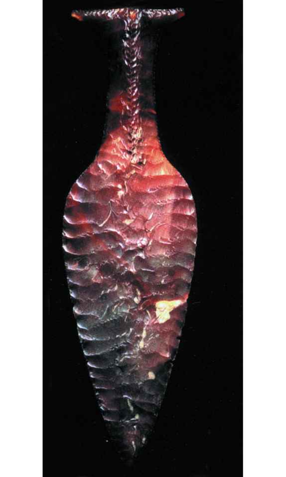 Кинжалы изготовлялись из кремния, обсидиана или кварца методом отжима. Действуя на небольшой участок костяным «отжимником», скалывали каменные чешуйки, создавая в лучших образцах оружия идеальную форму, затем еще и шлифуемую песчаником.