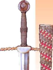 По окончании этого обряда рыцаря переоблачали. Сначала на него надевали нечто вроде темной фуфайки, на нее легкую, тканную золотом, рубашку. Затем его облачали в кольчугу и накидывали на плечи мантию, испещренную цветами и гербами рыцаря.