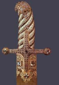 Основным оружием рыцаря в то время были обоюдоострый меч с плоской рукоятью и длинное с четырехгранным наконечником копье.