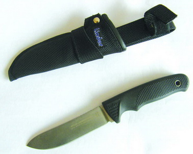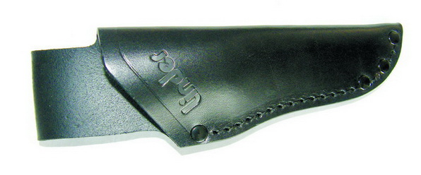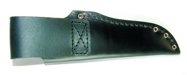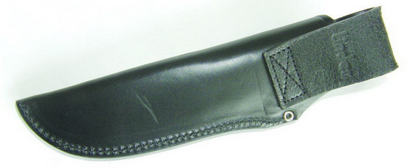В комплекте с ножом идут кожаные ножны черного цвета. Задняя стенка ножен формирует петлю для подвеса ножен на снаряжении или одежде. Ножны прошиты. Шов ровный. В местах, где существует возможность прорезать шов ножен, они усилены металлическими заклепками. Вдоль устья ножен на лицевой их стороне в коже выдавлена надпись Linder. Нож держится в ножнах за счет силы трения — фиксация надежная (мои попытки вытряхнуть нож из ножен не увенчались успехом). Петля подвеса рассчитана на достаточно широкий ремень. Подвешенный за ремень на брюки нож абсолютно не мешает при ходьбе или выполнении каких-либо работ. Согласно каталогу нож может также поставляться в пластиковых ножнах обтянутых синтетическим материалом кордура (фото 6, 7).