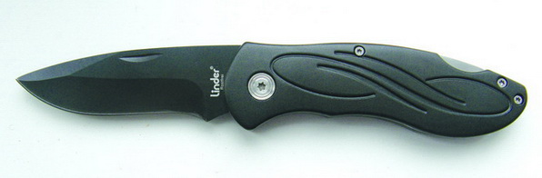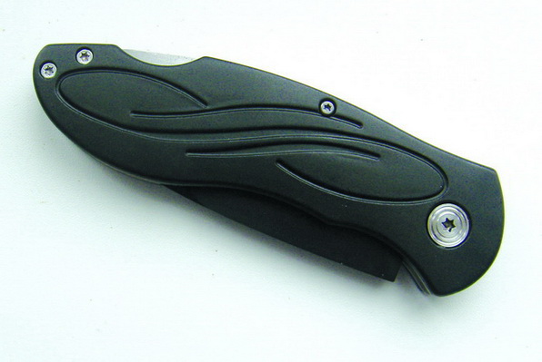 Второй складничок от компании "Carl Linder Nachf." — это модель 323411. Данный нож является новинкой 2009 г. Нож выполнен с некоторым уклоном в современность — черные алюминиевые накладки на рукояти с каплеобразным рисунком, достаточно массивный Клинок (во всяком случае, визуально) с тефлоновым покрытием и небольшой S-образностью РК, разборная конструкция на трех винтах TORX плюс осевой винт. Нож производит впечатление небольшого карманного ломика, при всем этом смотрится он совершенно не агрессивно (фото 26, 27).