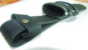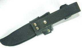 Нож запакован в полиэтиленовый пакет и картонную коробку фиолетового цвета. В комплекте с ножом идут пластиковые ножны, обтянутые синтетическим материалом типа кордура. Ножны черного цвета. Отдельная дюймовая стропа, которая заклепками прикреплена к ножнам, формирует петлю для подвеса ножен на снаряжении или одежде. Ножны прошиты (именно кордура, которой обтянуты пластиковые ножны). Шов ровный. Вдоль устья ножен на лицевой их стороне пришита лейба с надписью Linder. В устье ножен расположена пружина (зафиксированная небольшим винтом), которая дополнительно удерживает рукоять ножа в ножнах (на уровне подпальцевой выемки). Нож держится в ножнах также за счет дополнительного хлястика с липучкой, фиксирующего рукоять к петле подвеса. Петля подвеса рассчитана на достаточно широкий ремень. Подвешенный за ремень на брюки нож не мешает при ходьбе или выполнении каких-либо работ, однако менее удобен для ношения на поясе, чем первый, за счет своей длины. Данное решение ножен мне очень понравилось. Согласно каталогу нож может также поставляться в кожаных ножнах (фото 9, 10).