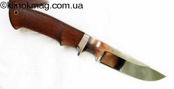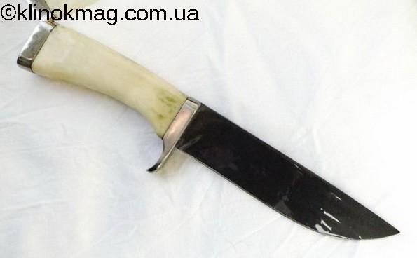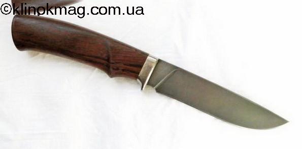 Клинок из стали 110х18, закалка 60 единиц, рукоять — «железное» дерево. Нож хорошо зарекомендовал себя во всех охотах, но после разделки туш 3-4 кабанов нужна легкая правка. Очень удобен при разделке. Но его лезвие уступает лезвию, выполненному из стали D-2.