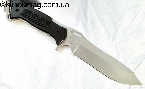 Клинок — американская сталь 440С. Нож современного спецназа, изготовлен от рукояти до острия лезвия из цельного куска стали, покрыт титановым покрытием, что делает его очень жестким и прочным. Нож многофункциональный, удобен в работе, применялся при разделке оленей, кабанов, лосей. За большой период работы один раз правился после рубки костей. Очень прочное лезвие, на порядок прочнее, чем у всех из имевшихся у автора ножей выживания.