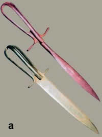 А чехословацкие части, воевавшие в Италии, имели на вооружении боевой нож М 1916, так называемый «Pungale», – переделку штыка винтовки Веттерли. Деревянная рукоять у основания имела металлическую обоймицу (кольцо) и очень напоминала ручку напильника, насаживаясь на черенок укороченного клинка.