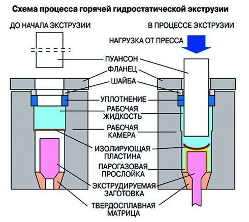Новый технологический процесс получил право на жизнь и стал быстро развиваться. Оказалось, что всестороннее сжатие заготовки пуансоном в контейнере повышает пластичность хрупких и малопластичных металлов и сплавов. Сегодня экструдирование горячих заготовок широко используется для получения из них прутков и профилей. Однако широкое применение этой технологии показало, что наряду с очевидными преимуществами она имеет и недостатки, затрудняющие ее использование.