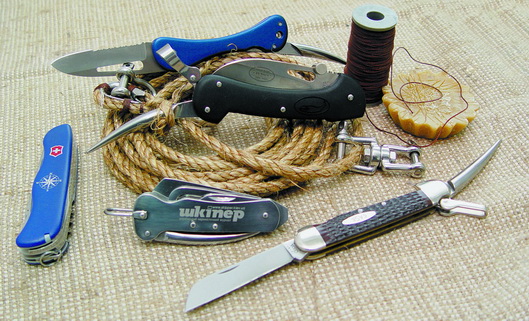 Но помимо непосредственного руководства палубной командой, в обязанности боцмана входит еще одна непростая задача — заведование так называемым шкиперским имуществом. Это имущество даже в наши дни, — когда эпоха парусного флота осталась далеко в прошлом — состоит из огромного количества канатов, тросов, парусины или брезента. И для того, чтобы управиться со всеми этими снастями, не обойтись без специального инструмента — ножа для такелажных работ.